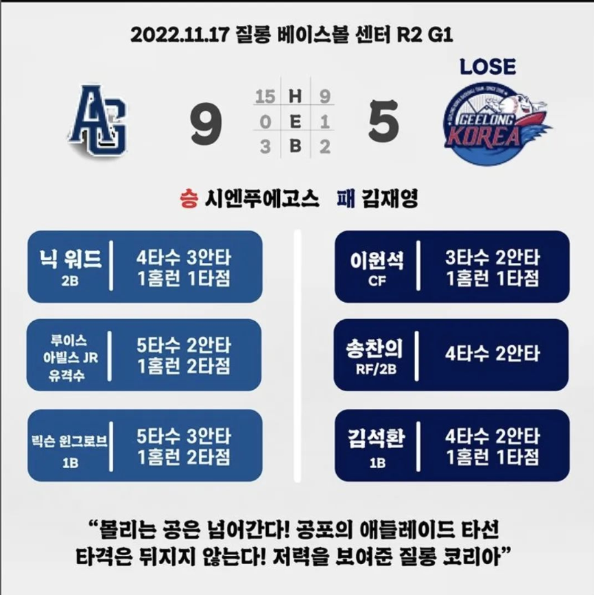 'Minding's Baseball > 2022-23 질롱 코리아' 카테고리의 다른 글