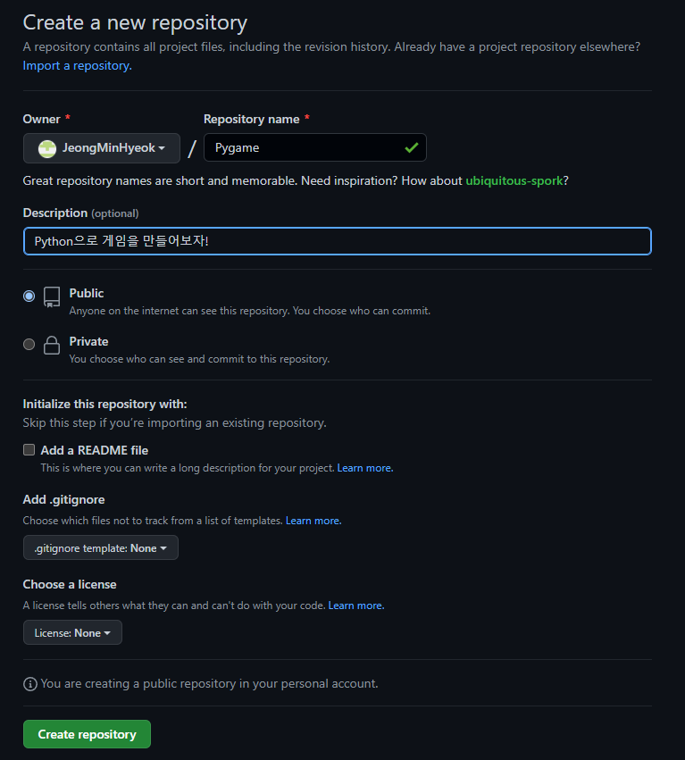 먼저 프로젝트 자료들을 보관할 레포지토리를 생성한다.
