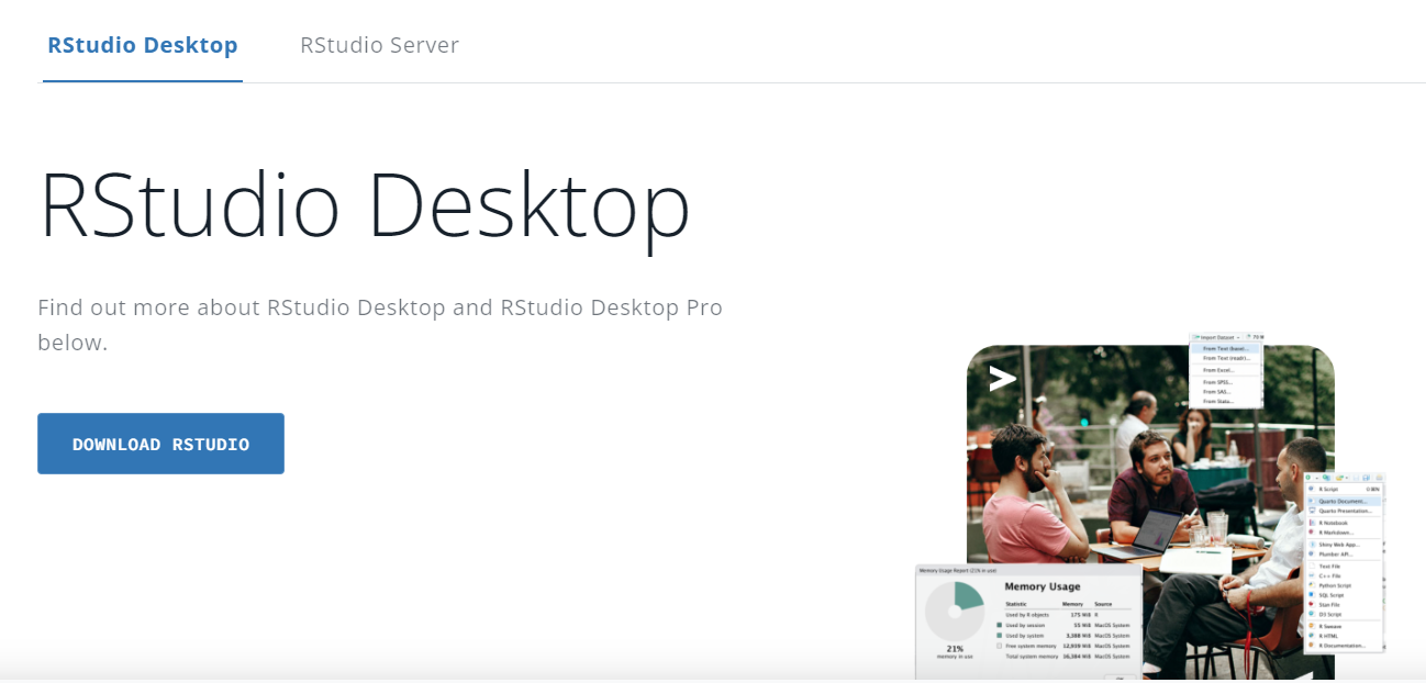 3. RStudio Desktop 아래에 있는 'DOWNLOAD RSTUDIO'를 클릭한다.
