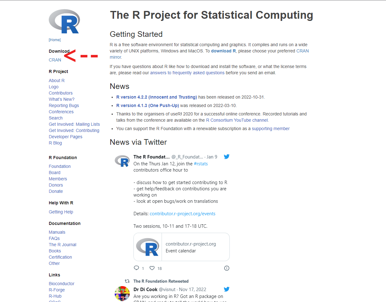 2. 왼쪽 상단 부분에 Download 밑에 있는 CRAN을 선택한다.