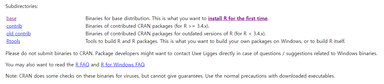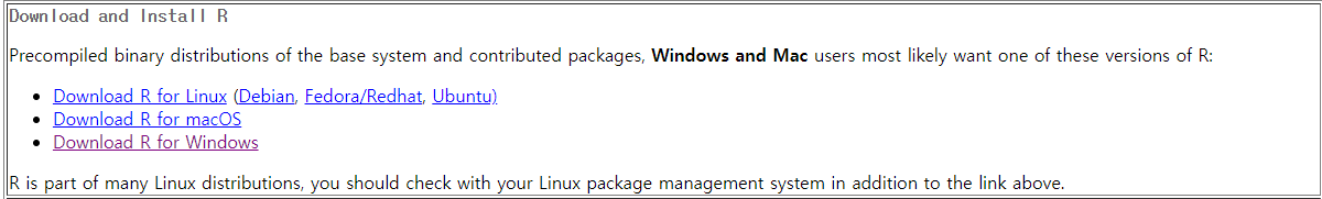 R을 처음 설치하는 거라면 'install R for the first time'을 선택하면 된다.