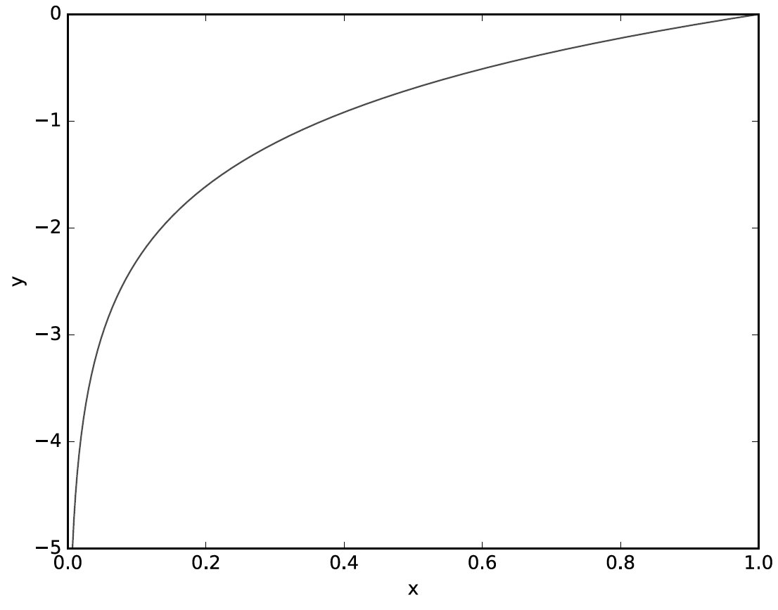 자연로그 y=logx의 그래프 : 정답출력이 커질수록 0에 다가가다가, 그 출력이 1일 때 0이 됨