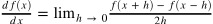 이 오차를 줄이기 위해 (x+h)와 (x-h)일 때의 함수f의 차분을 계산하는 방법을 쓰기도 함 = 중심차분 or 중앙차분