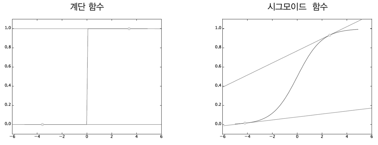 어느 장소라도 함수의 미분(기울기)은 0이 되지 않는게 신경망의 중요한 성질
