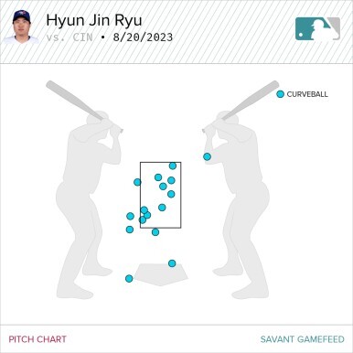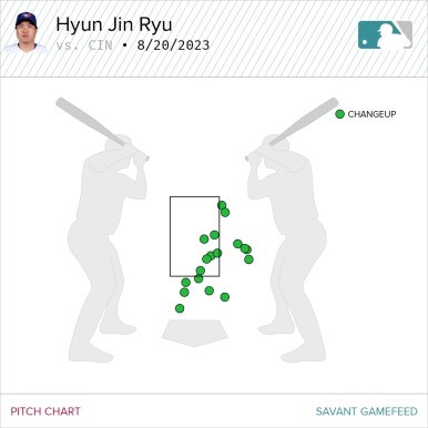 위에서도 말했듯 류현진의 오늘 포심 패스트볼 최고 구속은 89.6마일, 평균 87.4마일에 불과했다. 130km/h 후반에서 140km/h 초반의 패스트볼로 신시내티 타선을 제압한 것이다. 그 이유는 바로 커브와 체인지업의 적절한 조화, 절묘한 제구력 덕분이었다. 좌/우타자를 가리지 않고 스트라이크존 보더라인에 정확히 제구가 된 공들은 신시내티 타자들을 얼어붙게 만들었다.
