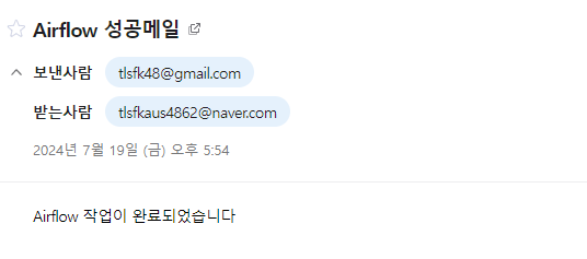 html_content='Airflow 작업이 완료되었습니다' # 내용