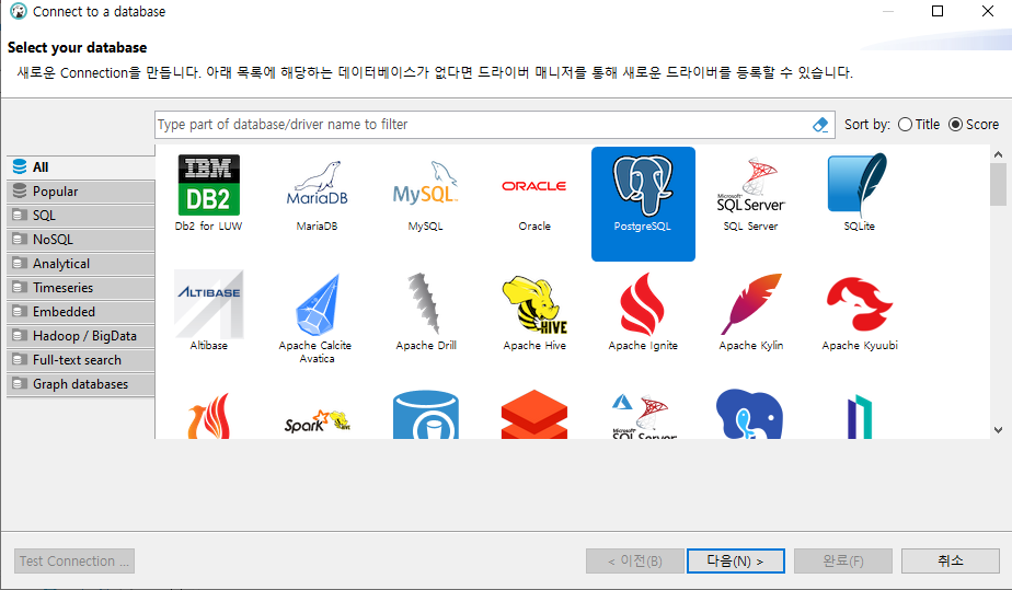PostgreSQL을 선택한다.