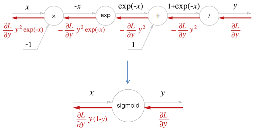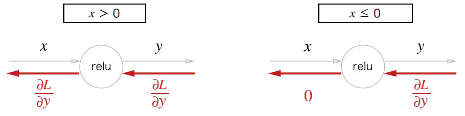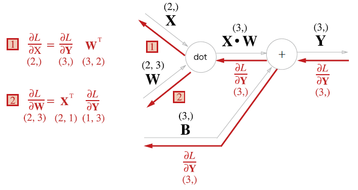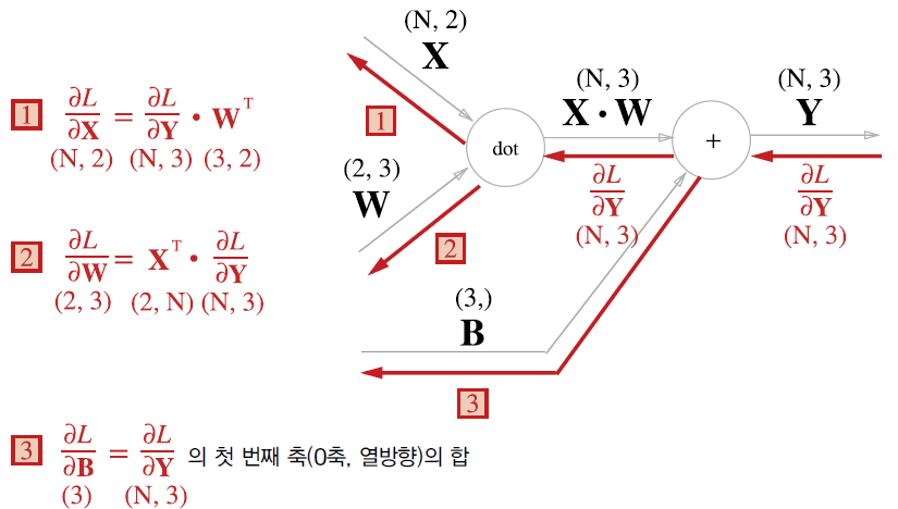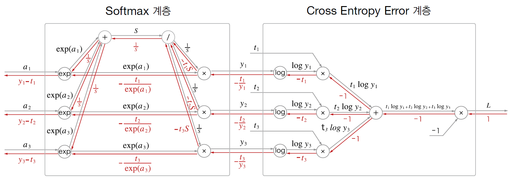 - 역전파는 순전파와 반대 방향의 굵은 화살표 그림