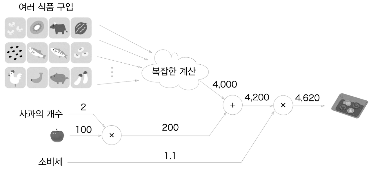 - 계산 그래프는 '역전파'를 통해 미분을 효율적으로 계산할 수 있음