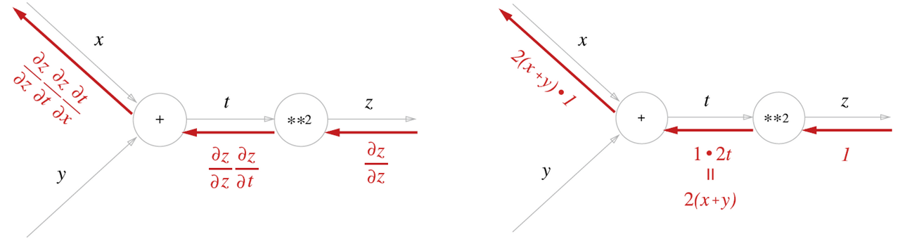 - 국소적 미분을 전달하는 원리는 연쇄법칙(chain rule)에 따른 것