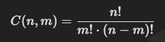 n개의 서로 다른 원소에서 m개를 택하는 경우의 수를 구할 때 (ex. 5개의 원소 중 2개를 구하는 조합의 수)