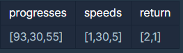 작업의 개수(progresses, speeds배열의 길이)는 100개 이하입니다.