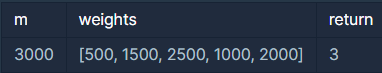 가방이 감당할 수 있는 무게 m, 사탕별 무게가 담긴 배열 weights가 매개변수로 주어질 때, 가방을 정확히 m 그램으로 채우는 경우의 수를 return 하는 solution 함수를 작성해주세요.