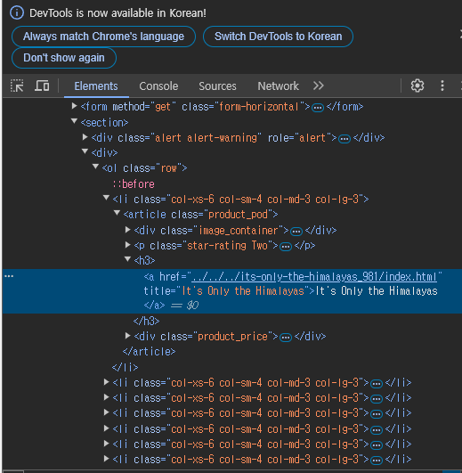 # 해당 태그로 감싸진 요소 찾아 변수에 저장