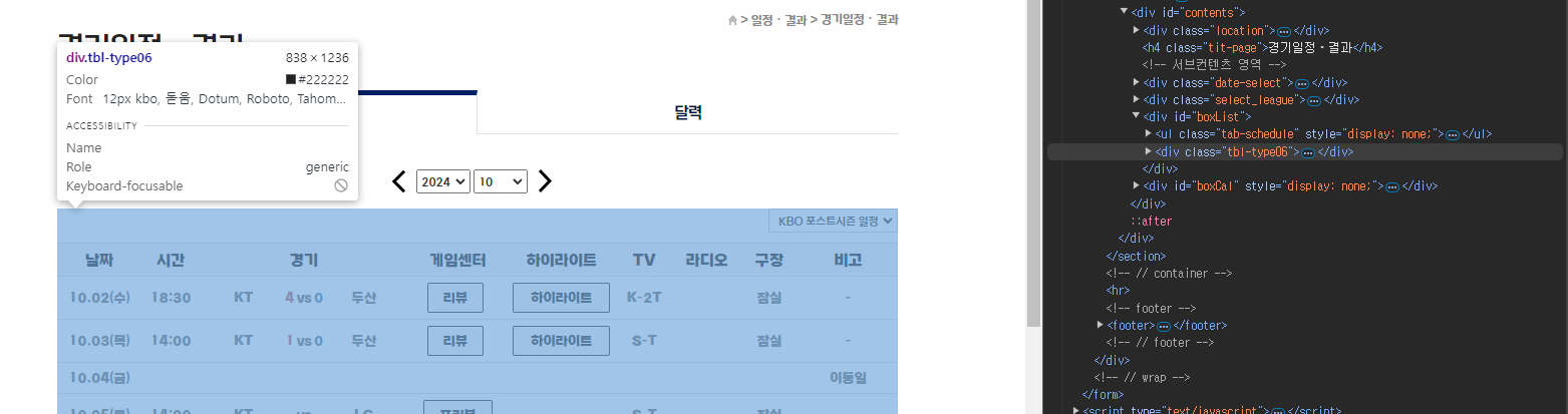 | [Python/Selenium] Selenium으로 KBO 경기 일정 크롤링하기 (0) | 2024.07.01 |