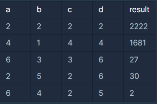 a, b, c, d는 1 이상 6 이하의 정수입니다.