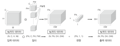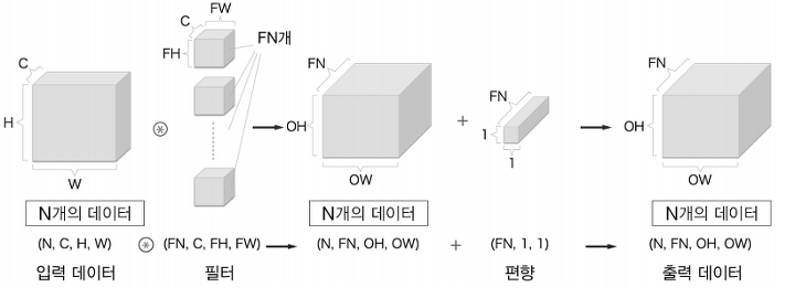 - 주의 : 신경망에 4차원 데이터가 하나 흐를 때마다 데이터 N개에 대한 합성곱 연산수행