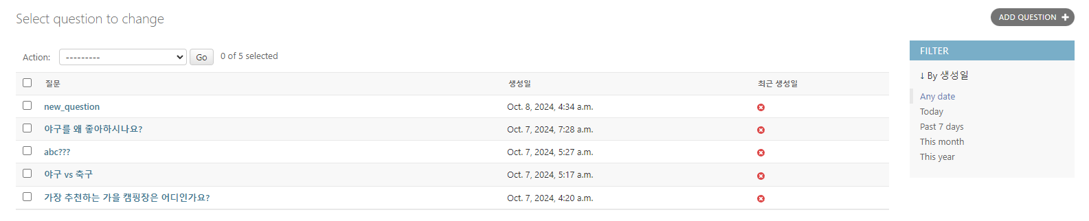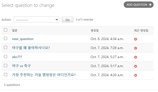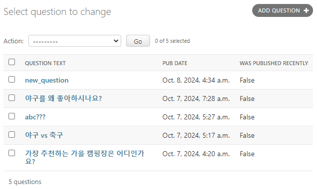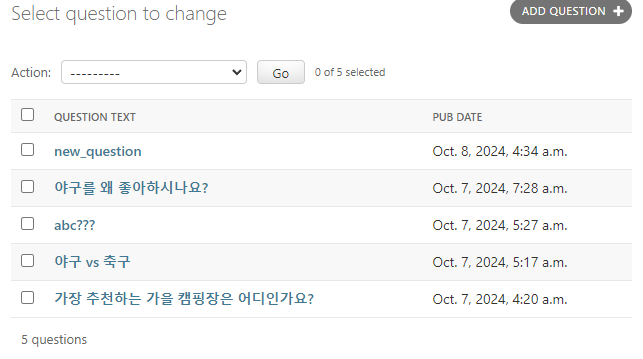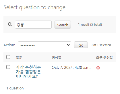 위와 같이 질문 내용(question_text)을 검색으로 필터링할 수 있다.