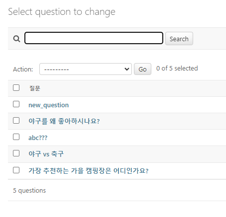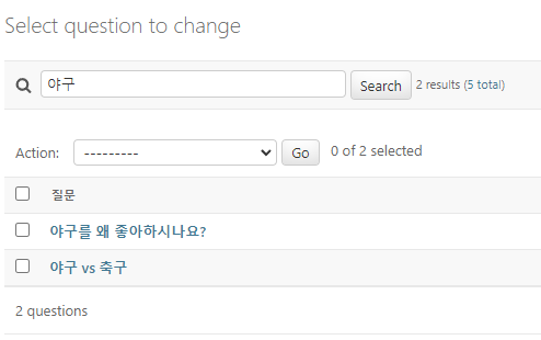 question_text를 search_fields로 전달하자 위와 같은 검색 폼이 생겼다.