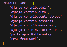 mysite/settings.py 내 INSTALLED_APPS에 'rest_framework' 추가