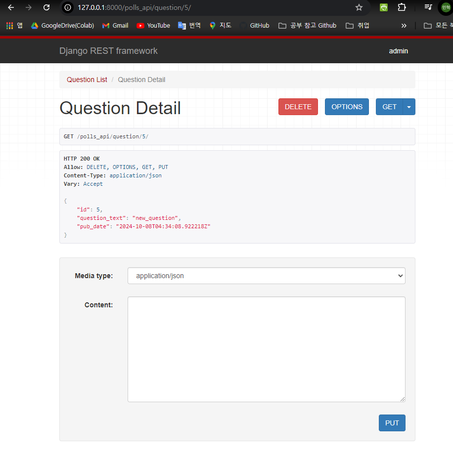 먼저 GET 메서드의 경우 question_list의 GET 메서드와 크게 다를 것이 없다. 다른 점은 반환되는 레코드가 단 하나라는 것이다.