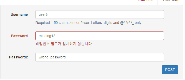 # password와 password2가 일치하는지 검사