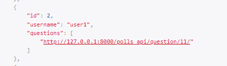 questions = serializers.HyperlinkedRelatedField(many=True, view_name='question-detail', read_only=True)