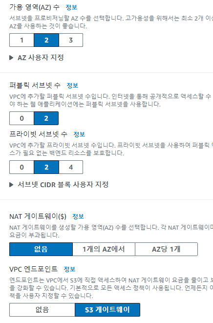 2. 가용 영역(AZ) 서브넷 설정
