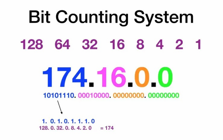 IP는 기본적으로 2진수 및 8비트로 나타낸다. 예를들어 174는 10101110으로 나타내는 것처럼 말이다.