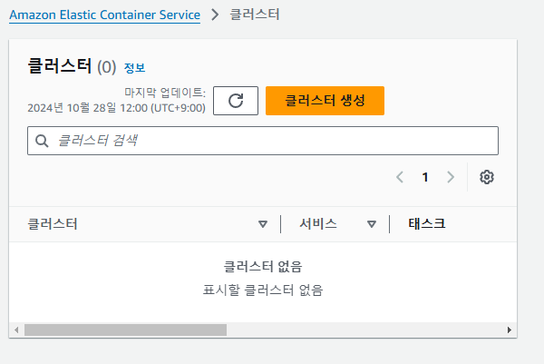 클러스터가 생성되었다면, 이제 이 클러스터에 '태스크'를 정의하고 컨테이너를 구성해주어야 한다. 좌측 메뉴 바에 '태스크 정의' 항목에 진입해보자.