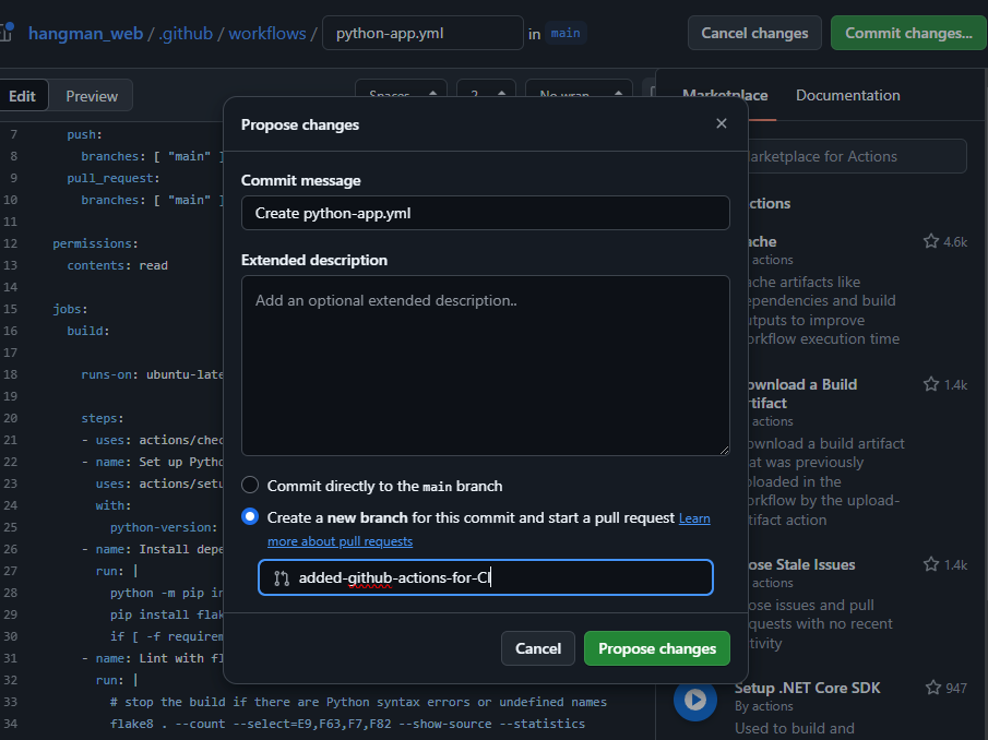 이후 우측 상단 Commit Changes 버튼을 클릭해 커밋하고, 변경한 점을 새로운 PR로 생성했다. PR에서 머지한 뒤 해당 브랜치는 삭제해주면 된다.