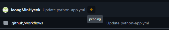 commit과 merge가 끝나게 되면, 커밋 메시지 옆에 주황색 불이 켜지는데, 이는 Github Actions가 실행되고 있다는 것을 뜻한다.