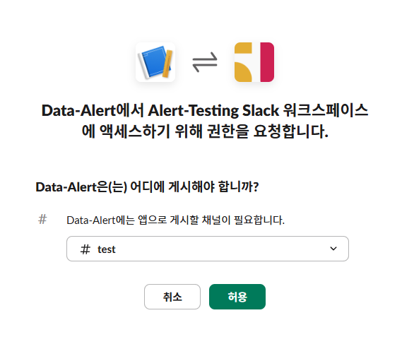 나는 test할 워크스페이스와 채널을 미리 만들어두었다.