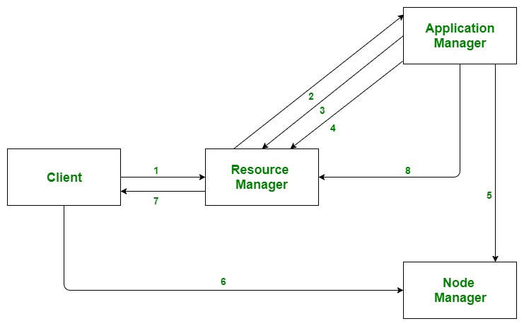 YARN은 위와 같은 방식으로 동작한다. 하나씩 살펴보자면,
