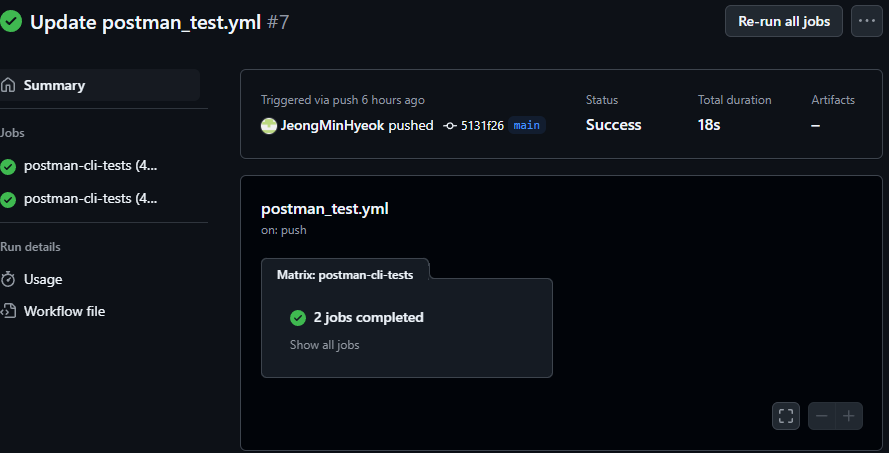 위에서 각 Collection 별로 테스트 스크립트 작성을 마치고 실행까지 확인했다면, 이제 Github 배포 시에 자동으로 작동할 수 있도록 설정해보자.