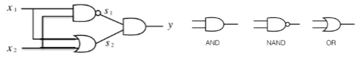 AND, NAND, OR 게이트를 조합하여 층을 쌓아 XOR게이트를 만듦.