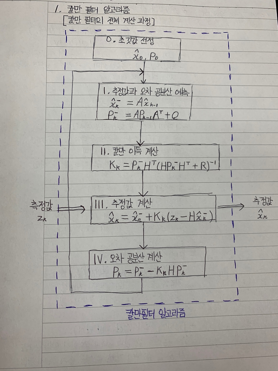 칼만필터 알고리즘 의미 별 분류 (예측과정과 추정과정)