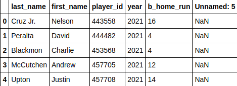 필요없는 칼럼제거 (player_id와 홈런 갯수만 사용)