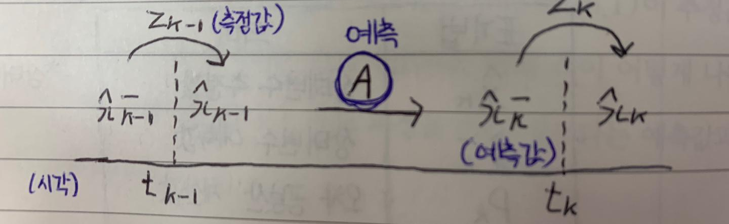 - 시각이 tk에서 tk+1로 바뀔 때, 추정값이 어떻게 변하는지 추측하는 과정