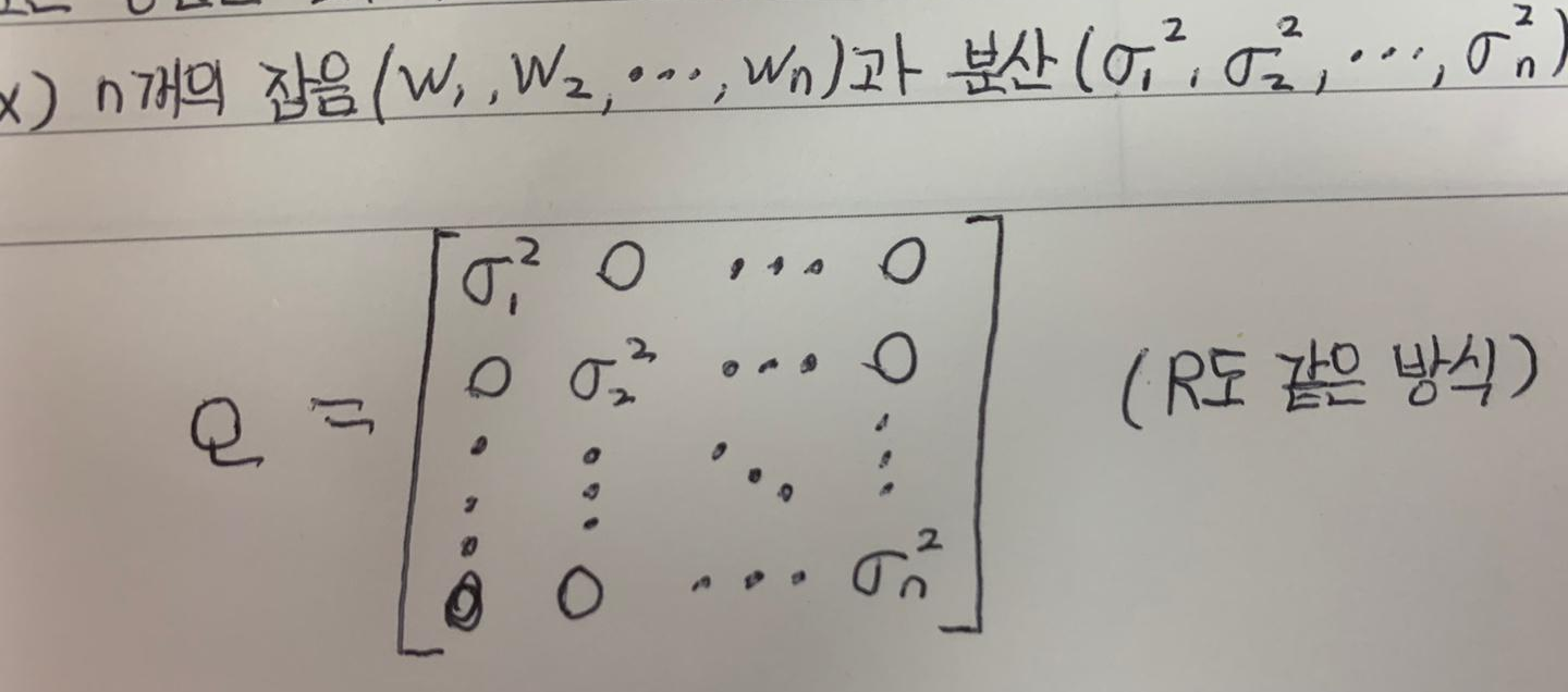 - Q : wk의 공분산 행렬, (n * n) 대각행렬
