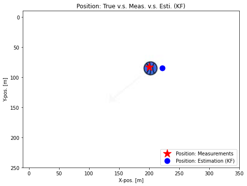 plt.title('Position: Meas. v.s. Esti. (KF)')