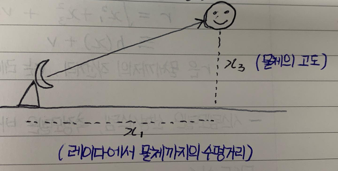 - 레이다가 측정하는 것은 이동물체까지의 직선거리
