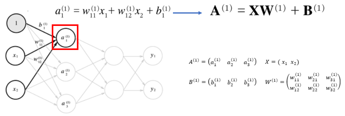 - 편향을 뜻하는 뉴런인 (1)이 추가