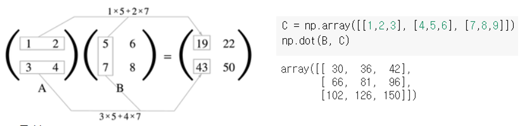numpy의 dot함수 이용하면 쉽게 곱셈가능