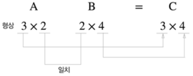 - 대응하는 차원의 원소 수를 일치시켜야 함 (그렇지 않으면 오류 출력)