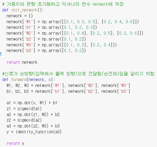 #가중치와 편향 매개변수가 딕셔너리 변수로 저장되어 있음