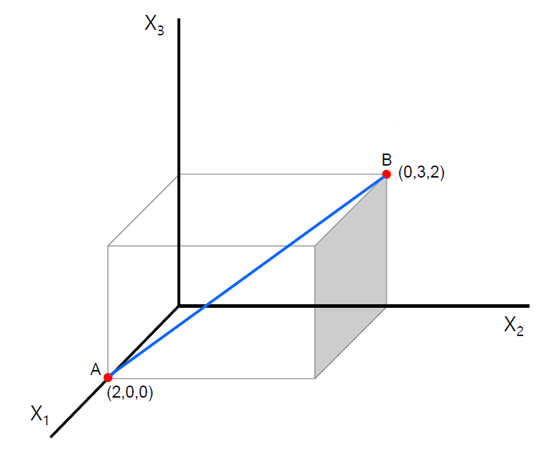 - 두 데이터 사이 직선 최단거리를 의미
