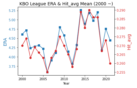 - 리그 평균자책점과 리그 평균 타율